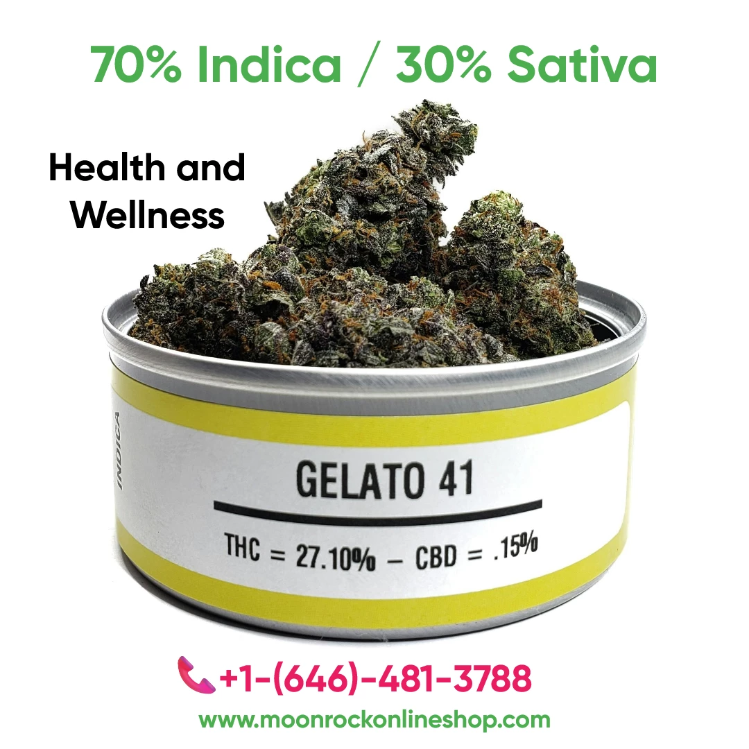 Buy Gelato #41 strain online today from the best weed delivery California Moonrock Online Shop. Firstly, this is one of California’s most popular hybrid flowers. In addition, each batch undergoes a lab Test process. Gelato 41 UK is rich in flavor and backed by a 100% money-back guarantee. We ship discreetly and worldwide. Order Gelato #41 online from Moonrock’s online shop for a cheap price and get 10% off. “According to strain data from Leafly, Gelato #41 is celebrated for its creamy flavor and balanced hybrid effects.”